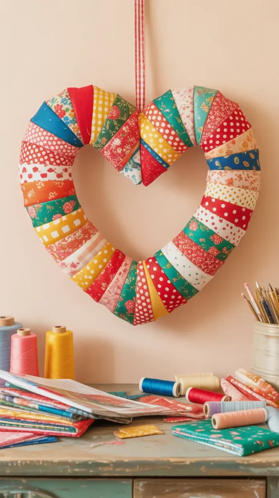 9. Fabric Scrap Heart Wreath