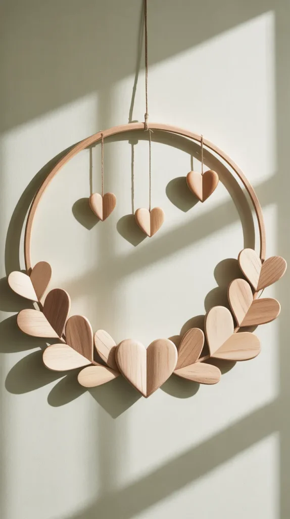 2. Minimalist Wooden Heart Hoop Wreath