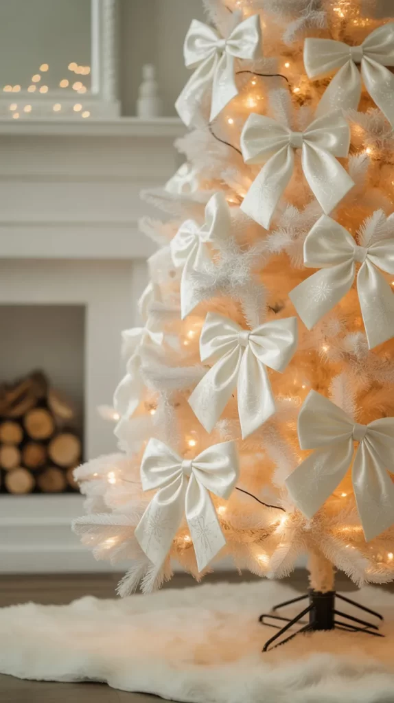 Ribbon bows create a classic holiday feel and complement white trees beautifully. They are simple yet striking and add dimension to your tree. Mix in other white ornaments or lights for a balanced and cohesive design.