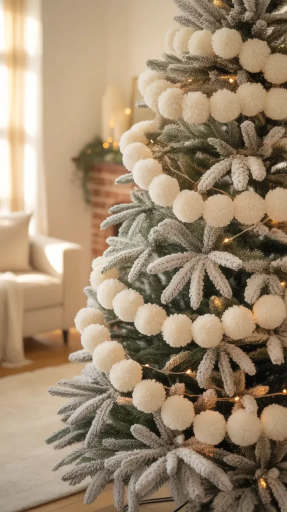 Pom-pom garlands are versatile and inexpensive. They soften the tree’s appearance and add a handcrafted touch. Kids love making pom-poms, which makes this project perfect for family bonding. It’s also easy to store and reuse for future Christmases.