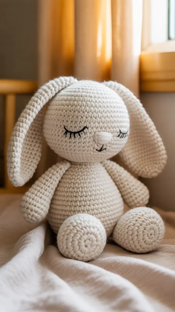 This design feels like a meaningful yet affordable gift option. Parents love the soft texture, and decorators enjoy how easily it fits into neutral spaces. Making several sleeping bunnies at once is a smart way to save yarn and time, making this a cost-effective project for crafters and sellers alike.