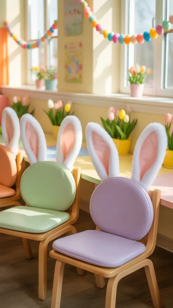 Add bunny ears to student chairs using felt or cardstock. This small touch creates a playful atmosphere without taking up wall space.