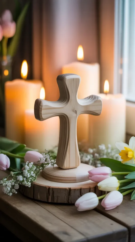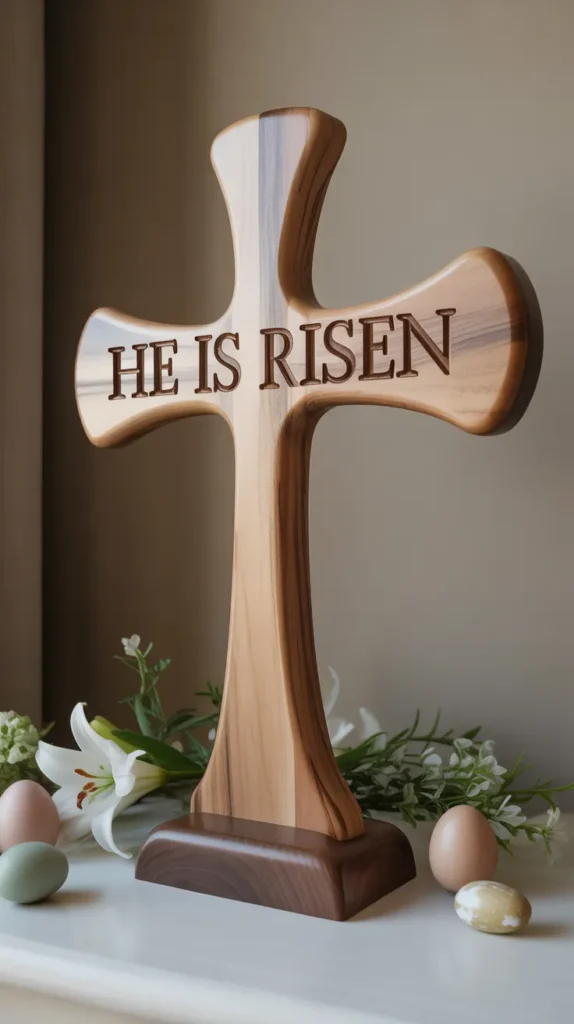 Small tabletop crosses are perfect for shelves, coffee tables, or prayer corners. Pair one with candles and a few flowers for a meaningful Easter vignette.