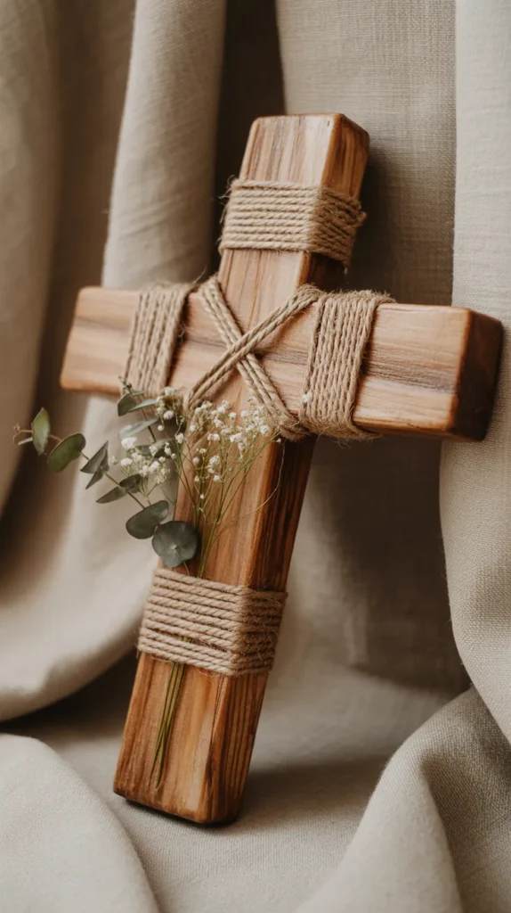 Wrap twine around a wooden cross for a simple, earthy look. Add a tiny greenery sprig for spring charm.