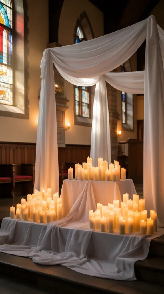 LED candles are affordable, reusable, and safe. This makes them a smart investment for churches wanting a simple yet powerful Easter decor church stage design without high costs.