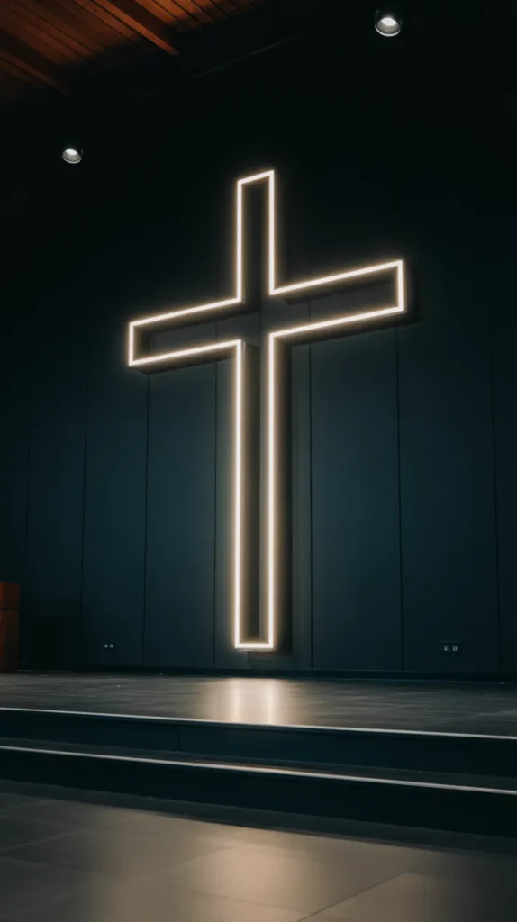 For modern churches, a minimalist cross outlined with LED strip lights creates a clean and powerful visual. Mount the cross on a dark background so the lights stand out clearly.