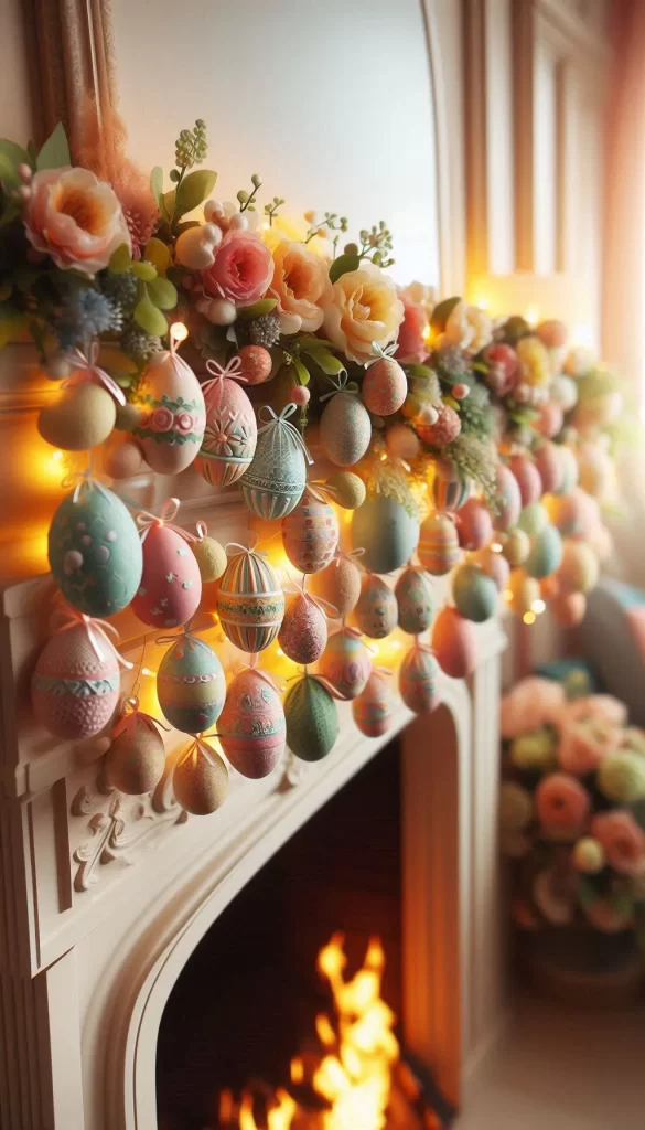 Create a colorful garland using plastic eggs, string, and some paint. This simple decoration can add a festive touch to any room.