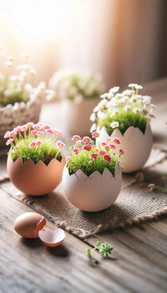 Re-purpose eggshells as cute little planters for tiny seedlings or flowers.