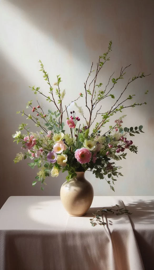 - Arrange the flowers in the vase, adding greenery for a fuller look.