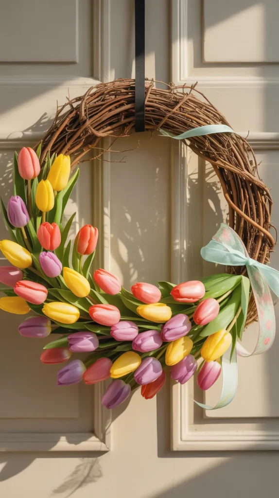 10. Tulip-Focused Grapevine Wreath