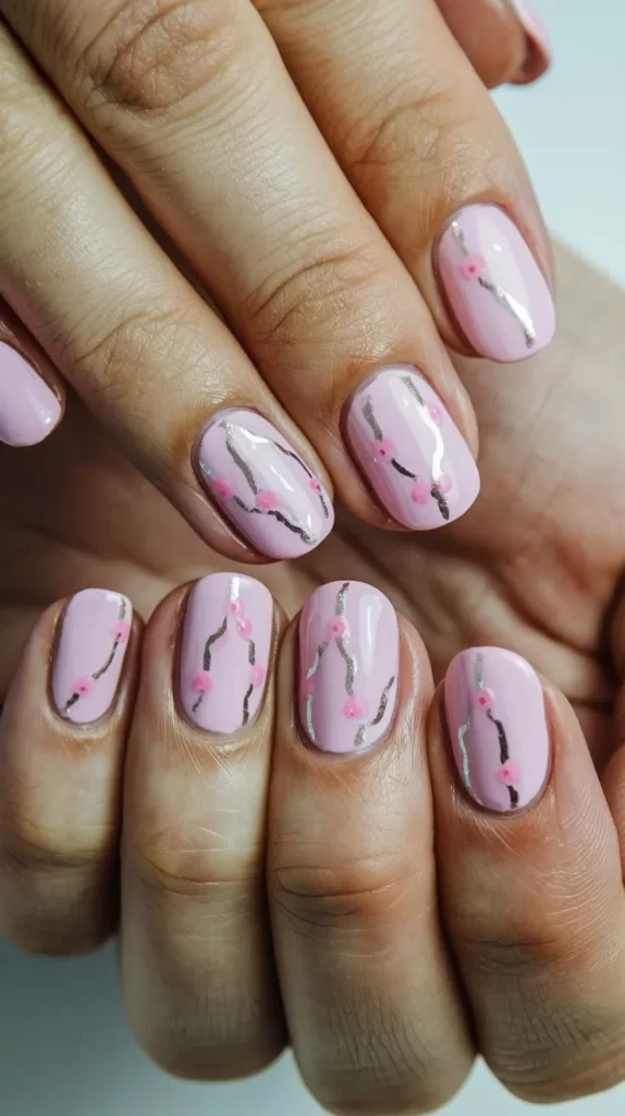Add a touch of elegance with delicate silver lines combined with subtle pink accents for a refined Valentine’s Day look.