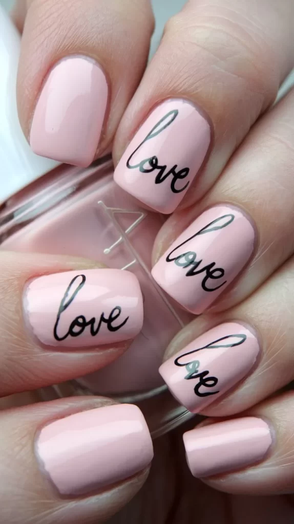 - Use a fine nail art brush or pen to write small “LOVE” or other love-related words on a few nails.
