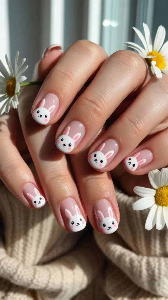 Soft pink bunny nails give a gentle, sweet vibe that’s perfect for spring. Use a light pink base and add tiny bunny faces or ears on one or two nails. This look feels clean, fresh, and very wearable for daily life.