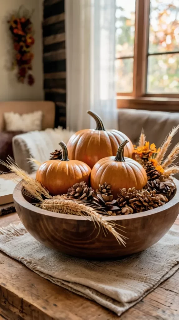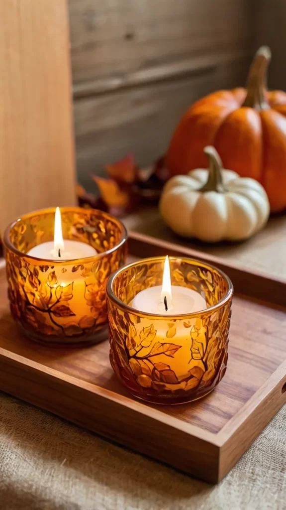 • Decorate with candles, mini pumpkins, and framed seasonal quotes.