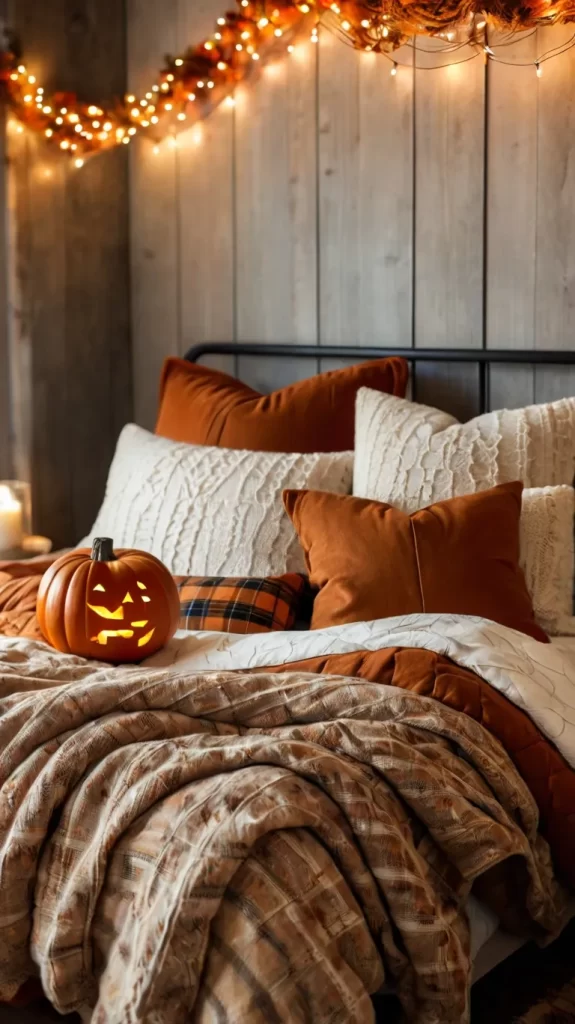 Turn your bedroom into a warm fall haven with textiles and natural touches.