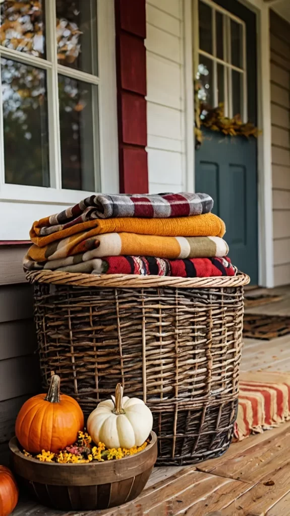 Keep cozy throws accessible by storing them in a stylish basket on the porch.