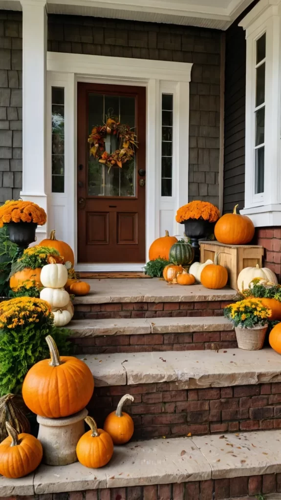 A collection of pumpkins and gourds instantly brings fall charm and color to your porch.