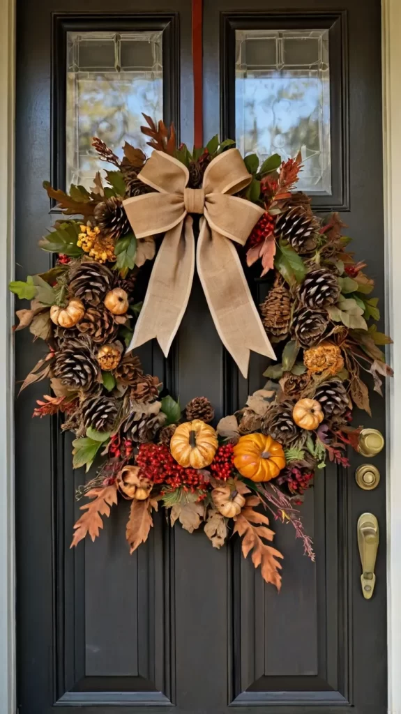 Hang a fall-inspired wreath on your door using natural textures like twigs, leaves, and berries.