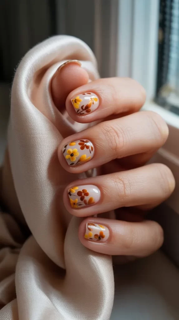 15. Fall Floral Nails