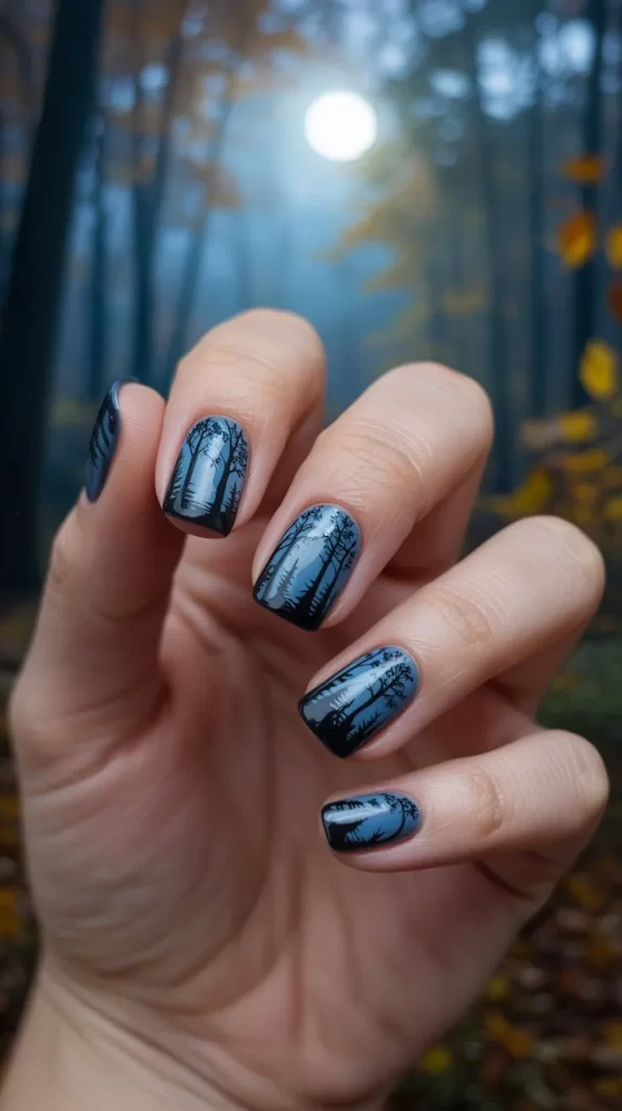 9. Midnight Forest Nails