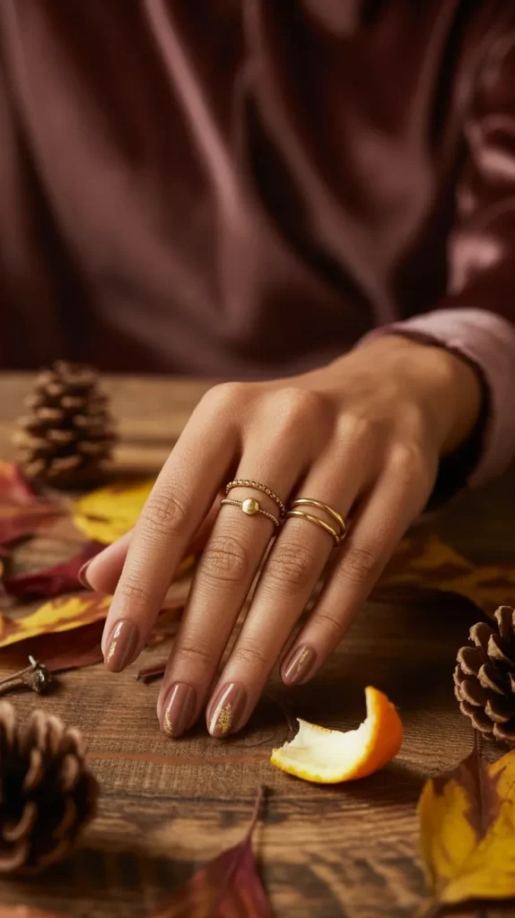 A rich mocha base with gold foil accents gives luxe vibes without the effort.