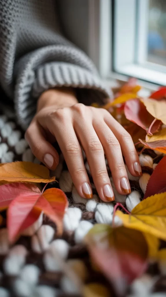 Classic French tips reimagined with taupe or cinnamon-toned ends.