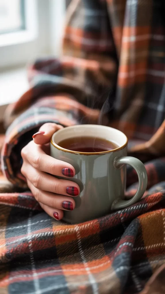 Tip: A stamping tool or nail striping brush makes plaid easy.