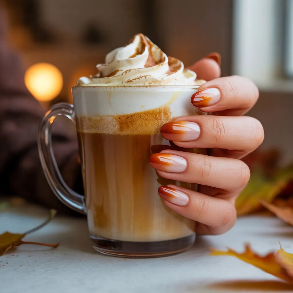 A gradient blend of burnt orange to creamy beige mimics your favorite seasonal latte.