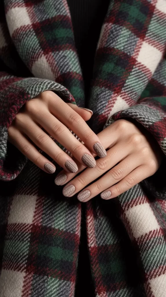 - Use a thin brush and thick gel polish to draw cable-knit patterns.