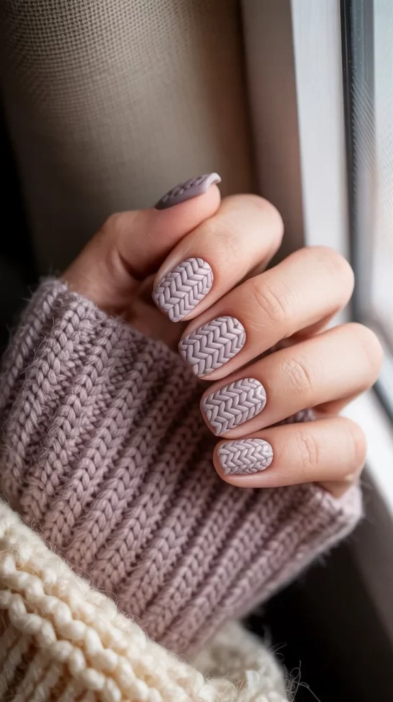 Replicate cable-knit patterns with raised texture using gel polish in soft fall hues.