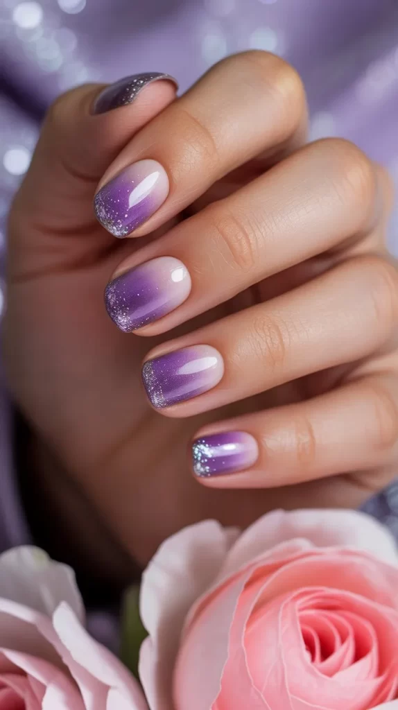 Create a gradient effect using shades of purple, from lilac to deep violet. Add chunky silver glitter to the tips for a sparkling finish. This ombre effect is elegant, feminine, and perfect for Halloween without relying on classic scary themes.
