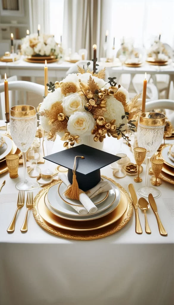 Gold and white are timeless colors that exude sophistication, making them perfect for a graduation celebration.