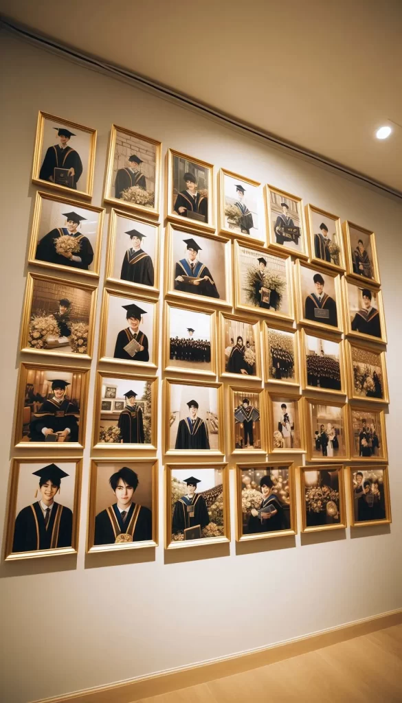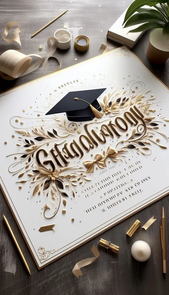 • Include elegant props such as graduation caps, gold frames, and vintage-style items.