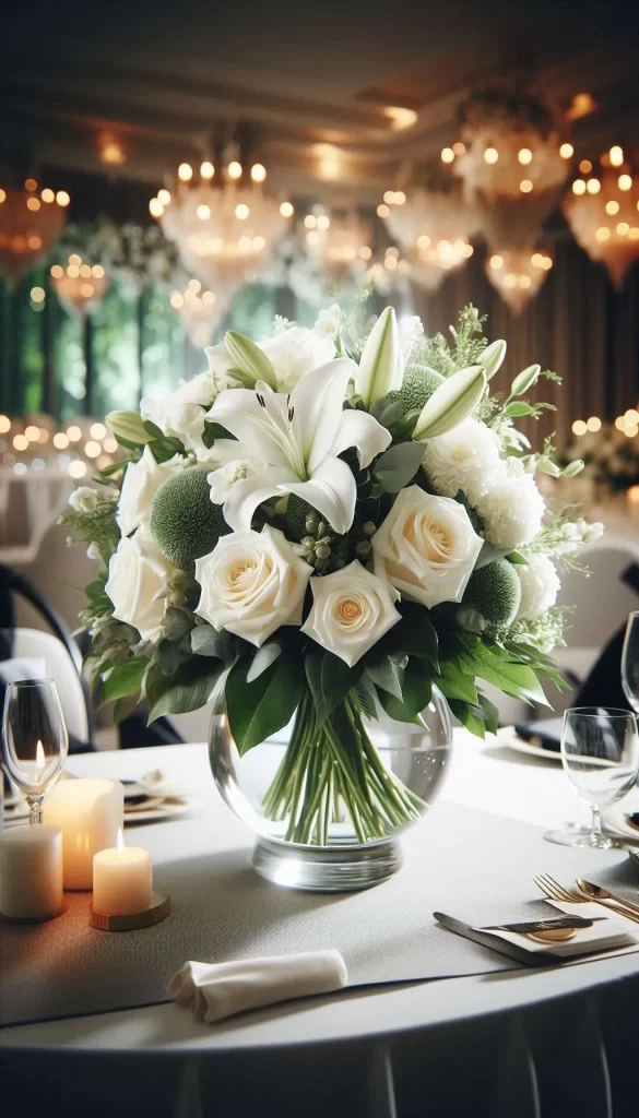 • Select flowers that fit the color scheme of your event, such as white roses, lilies, or orchids.