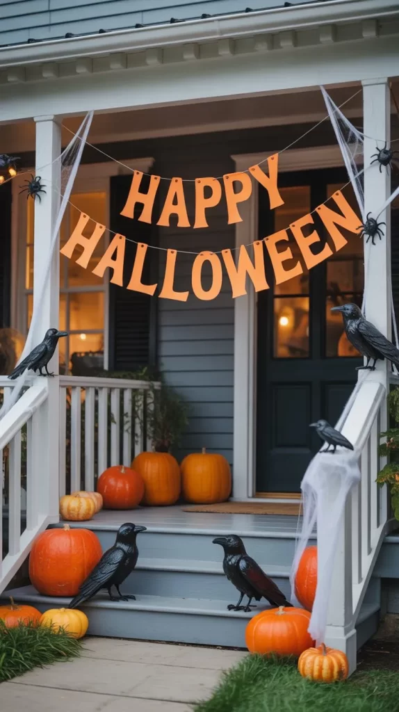 If you’re really short on time, visit your local dollar store in the USA. Grab a few inexpensive Halloween items—plastic pumpkins, spider webs, banners, or fake ravens—and mix them together for an eclectic, last-minute decoration. The key is layering and placement to make everything look intentional.
