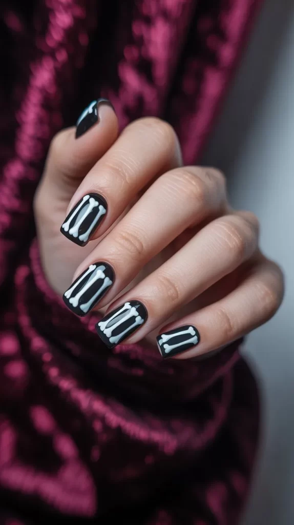 These nails are edgy and perfect for Halloween enthusiasts who like bold designs. Adding a shimmer or matte finish can elevate the look. Skeleton nails match well with costumes or gothic-style outfits, making them a must-try this Halloween.