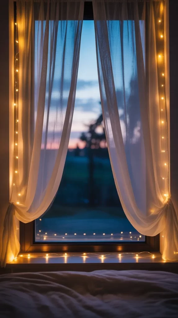 Replace or layer your regular curtains with sheer white fabric to create a ghostly effect. Add glow-in-the-dark accents or string lights behind them for an eerie nighttime look. This transforms windows into haunted focal points.