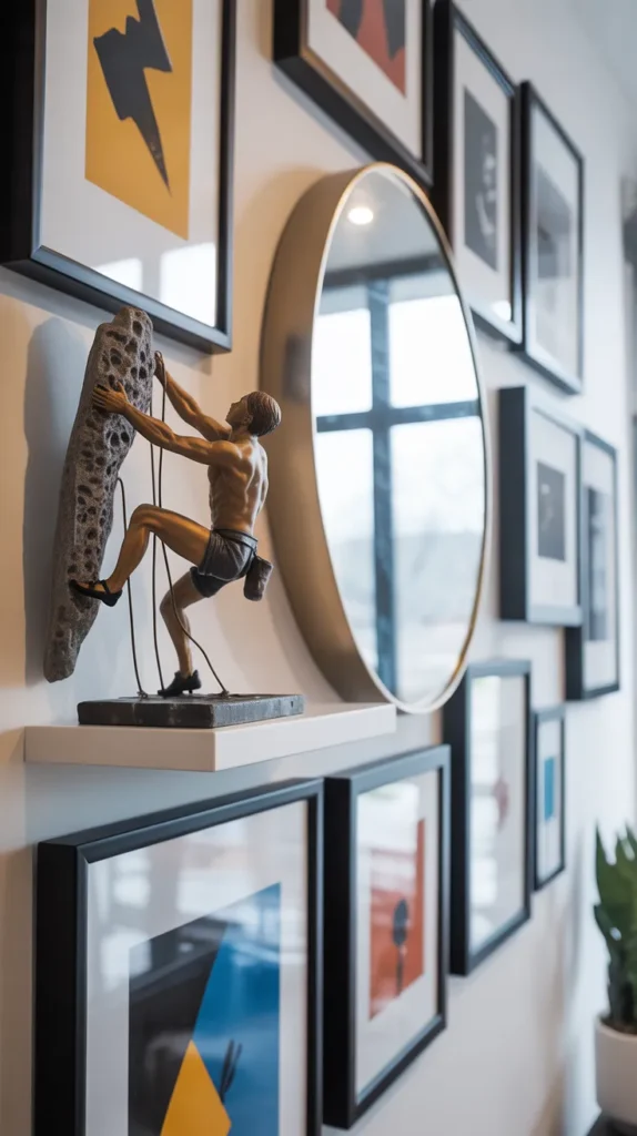 Mix a climbing sculpture with framed art, clocks, or mirrors to create a modern gallery wall. The 3D shape breaks up flat surfaces and adds texture. This makes the whole wall feel richer and more custom.
