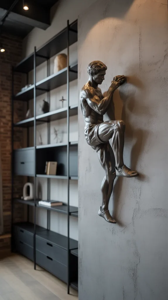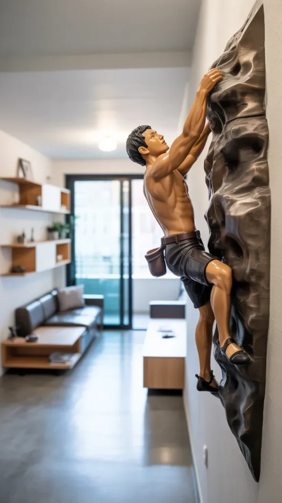 Wall sculptures are excellent for apartments because they add style without using floor space. A compact climbing man figure can make a rental or studio feel more polished and unique. It brings visual interest where large furniture cannot fit.