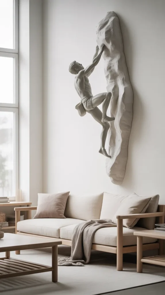 For big living rooms, choose an oversized climbing man sculpture or a multi-piece set. Large walls need bold decor, and this design adds energy, height, and strong visual focus. It can become the centerpiece of the whole room.