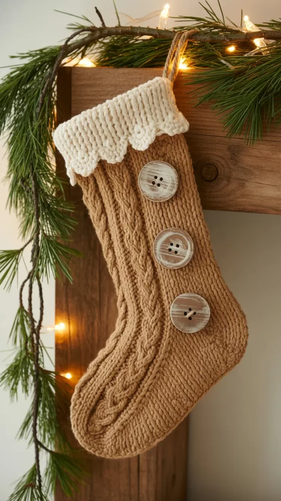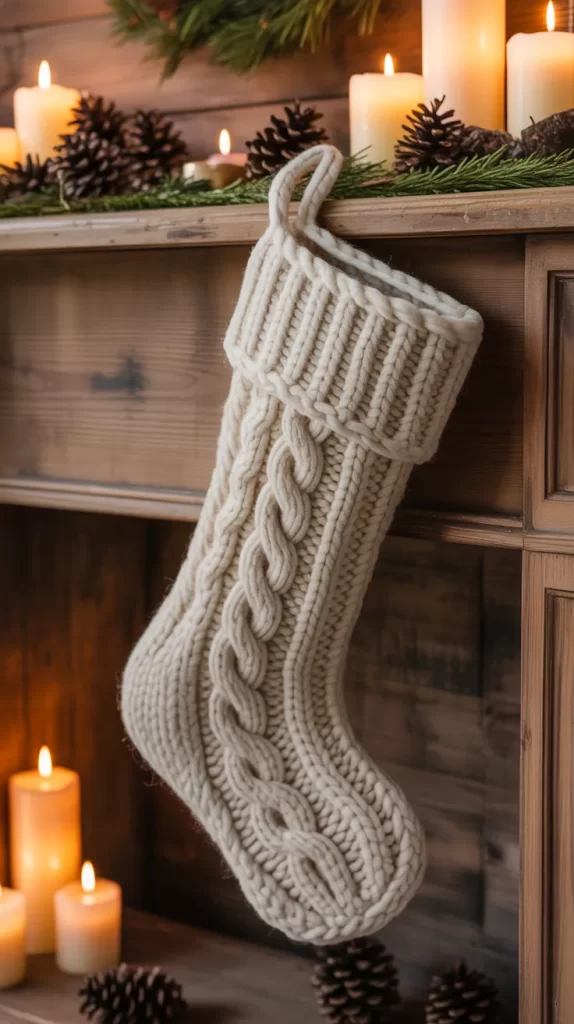 You can also weave in metallic threads for a subtle sparkle. This stocking blends perfectly with minimalist or neutral décor while still looking festive and artistic.