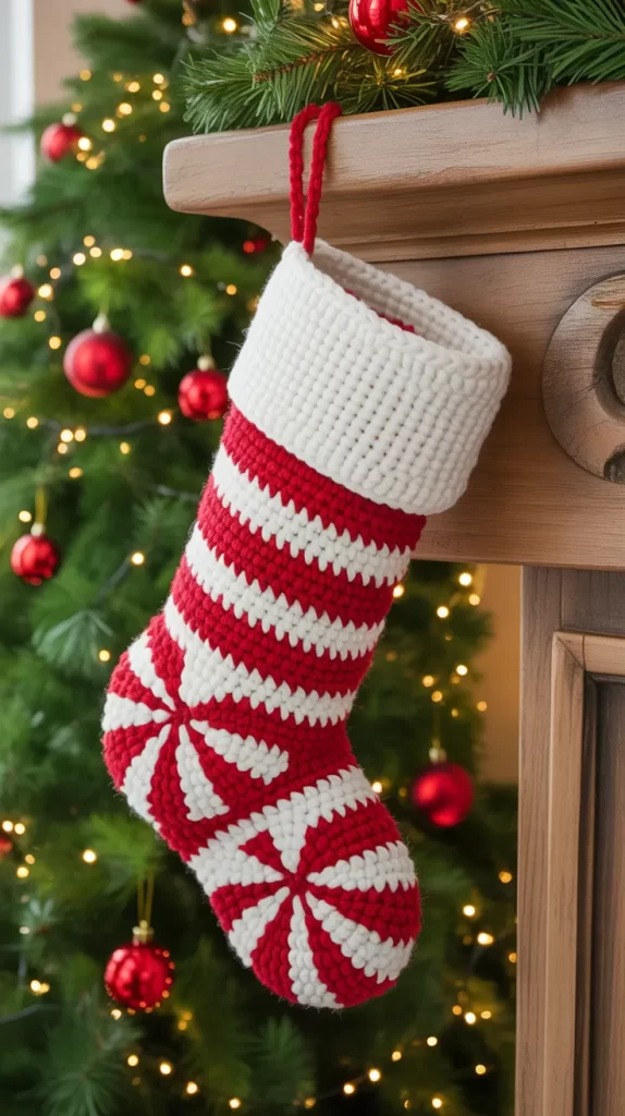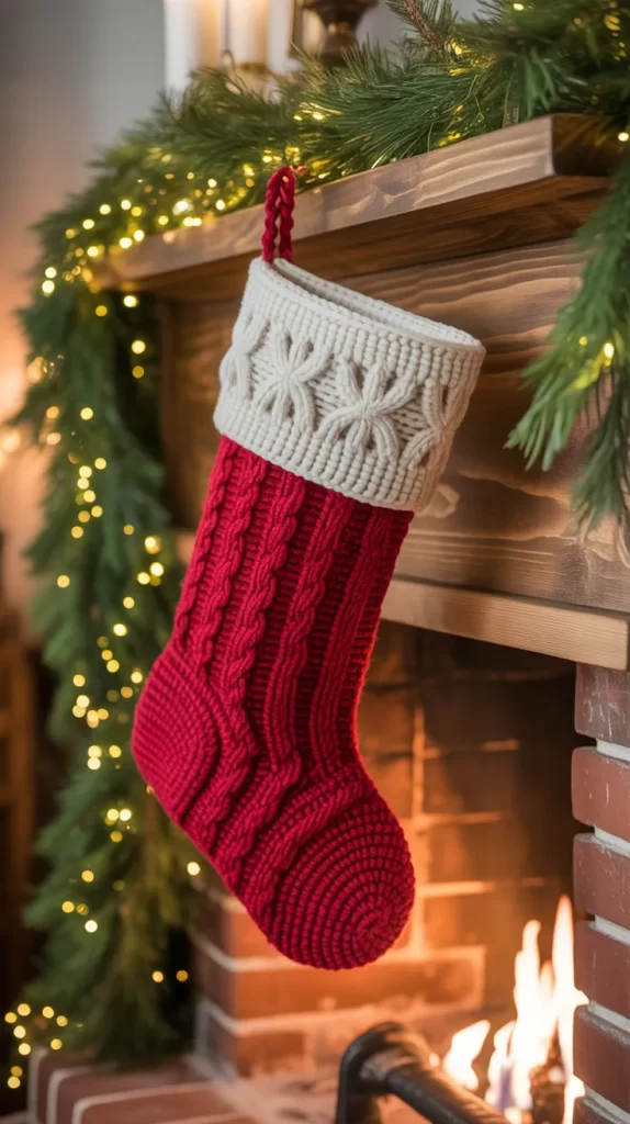 This simple pattern is perfect for beginners who want to crochet something classic and meaningful. It looks great hanging from your fireplace or staircase, giving your home a traditional holiday glow.