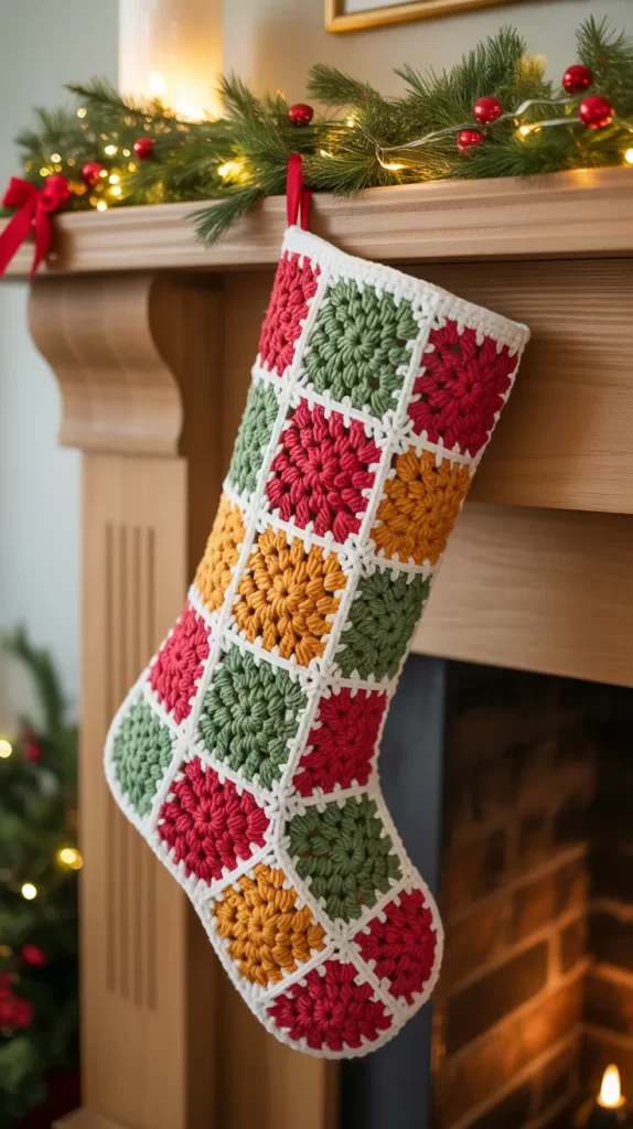 Turn colorful granny squares into a cheerful Christmas stocking full of personality! This design allows you to use leftover yarn from past projects, creating a beautiful patchwork of color and texture.