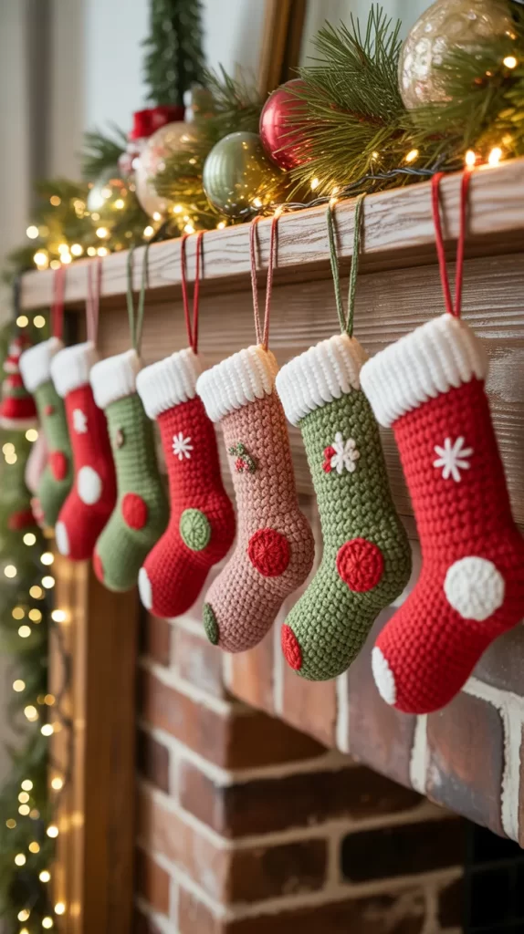 Why stop at one? Crochet several mini stockings and string them together to create a stocking garland. Use a mix of red, green, and white for a traditional palette, or go pastel for a softer look.