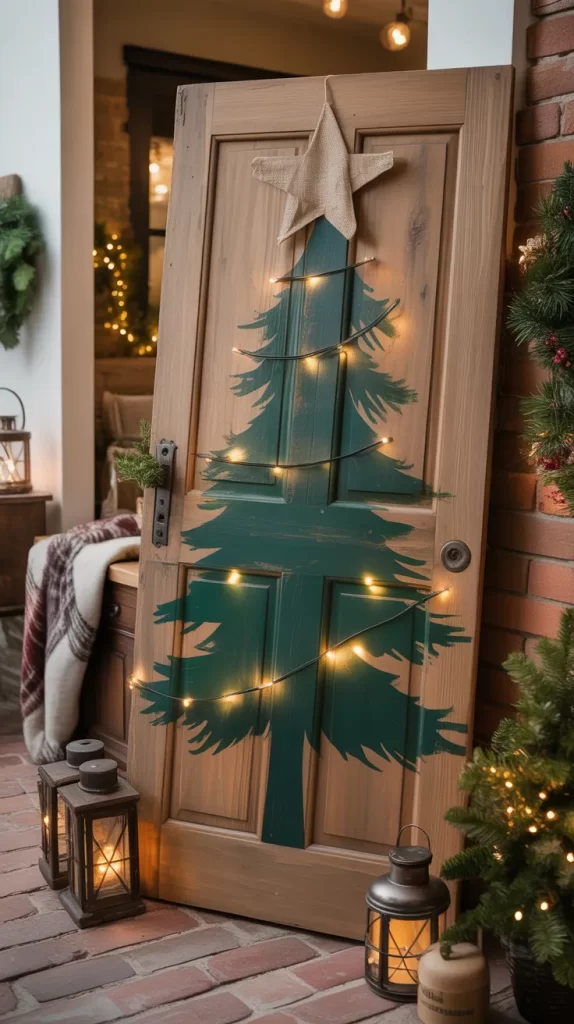 The door’s texture and hardware add character. You can lean it against a wall in a foyer or hang it above a mantel. After Christmas, it could remain as decorative paneling or upcycled furniture.
