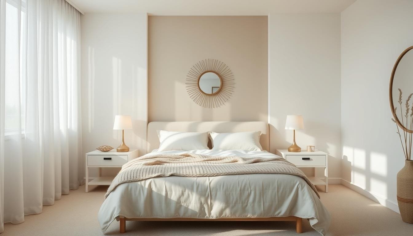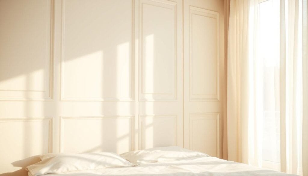 Choosing the right cream and white colors is key for a peaceful bedroom. Your bedroom is a place to relax and sleep well. The colors you pick can greatly affect how you feel.