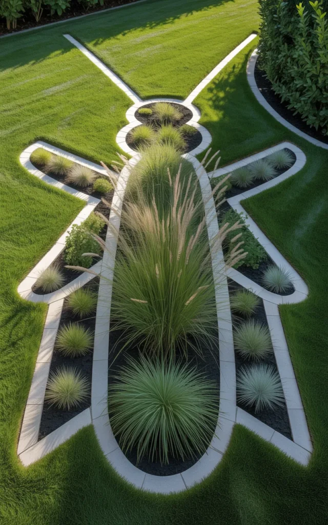 This design is ideal for people who like bold and unusual landscaping ideas. It is cost-effective because stone lines do most of the visual work, so fewer plants are needed. It also stays attractive through all seasons.