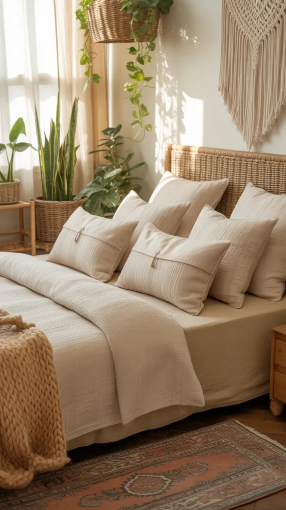 Choosing earth-tone pillow covers is a budget-friendly way to refresh your room without buying new bedding. They pair well with textured blankets and soft rugs for a cozy, layered look that still feels simple and affordable.