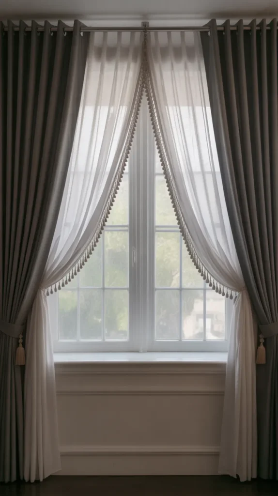 Using a double curtain rod makes layering easy and practical. One rod holds the sheers, while the other holds heavier drapes. This setup allows you to adjust light and privacy quickly.