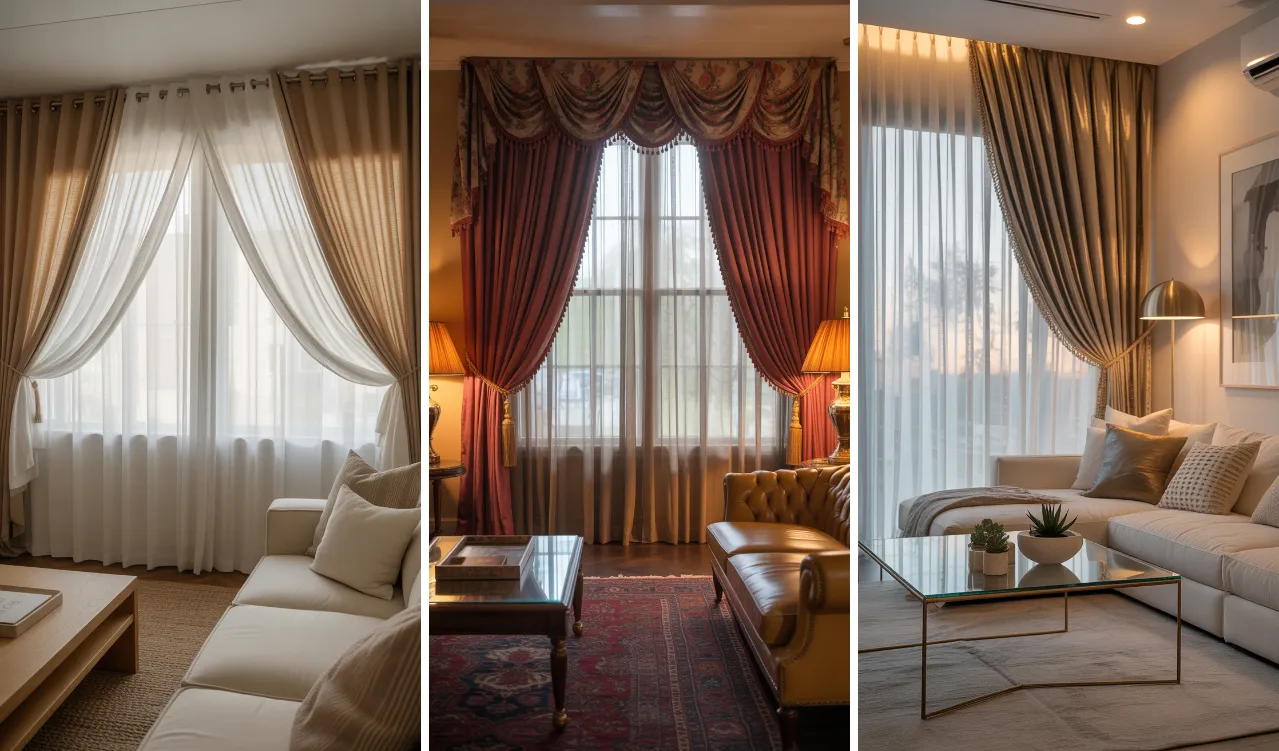Layered curtains with sheers are one of the easiest ways to upgrade your living room without a full renovation. This design combines light-filtering sheer curtains with heavier drapes to create a soft, elegant, and functional look. It helps control natural light, improves privacy, and adds depth to your space. Whether your style is modern, classic, or cozy, layered curtains can match any theme.